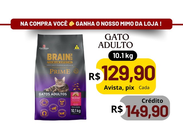 Brain Plus Premium Especial Gatos Adultos é um alimento completo e balanceado que foi especialmente desenvolvido com ingredientes rigorosamente selecionados, a fim de satisfazer o paladar dos gatos.